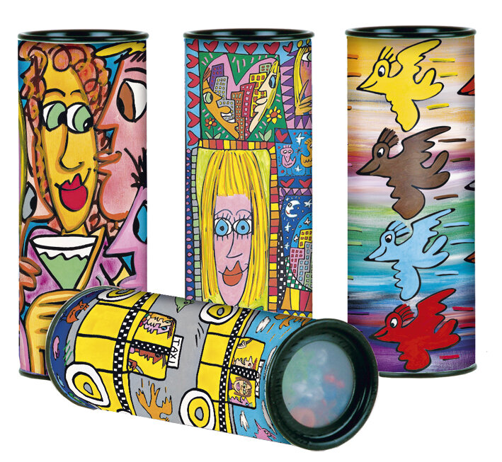 Kaleidoscop: Zrkadlový optický prístroj, v ktorom pestrofarebné guľôčky vytvárajú symetrické obrazce, kaleidoscop možno objednať, na doplnenie do krabice, predáva sa spolu 6ks, 1ks je priemer 4,5x12